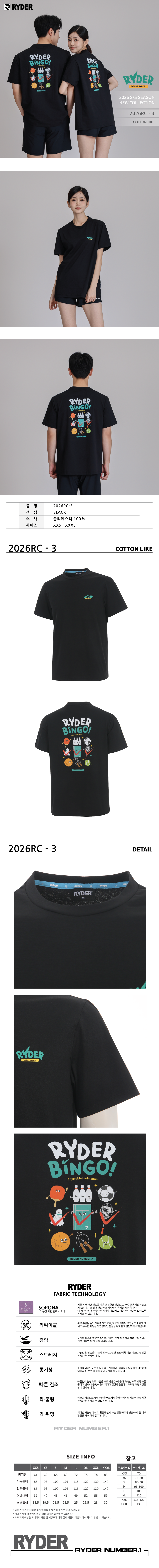 라이더 남성 여성 배드민턴 반팔 티셔츠 2026RC-3
