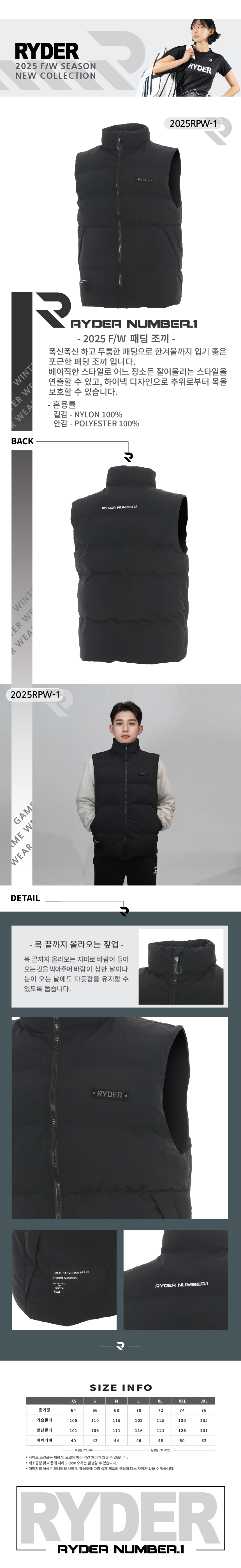 HOME > 브랜드 > 라이더 > 라이더 패딩조끼 남녀공용 2025RPW-1 패딩조끼