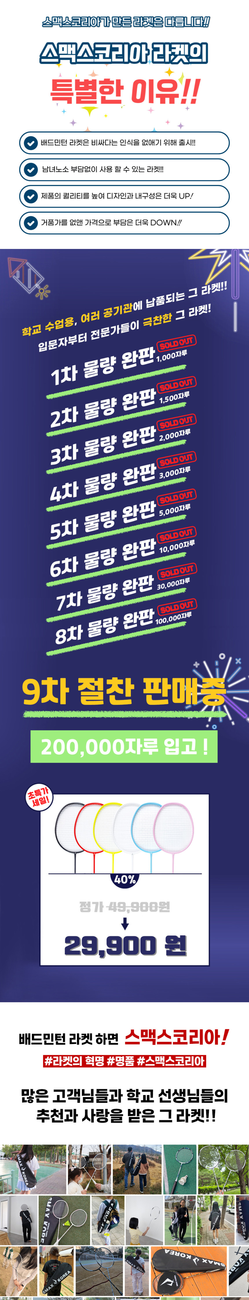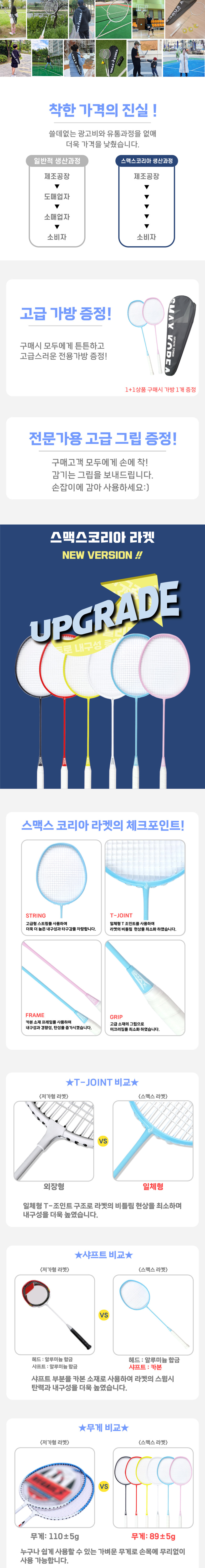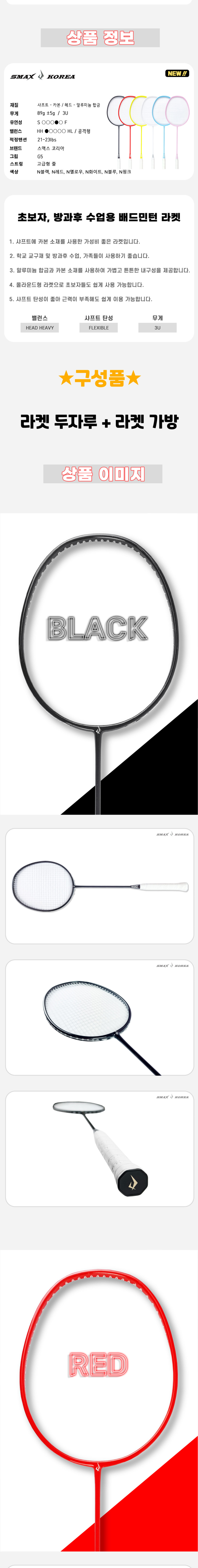 HOME > 라켓 > 스맥스코리아 > 스맥스코리아 2자루 + 가방 카본소재 초경량 배드민턴 라켓 방과후 어린이 단일색상