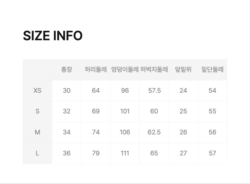 Item size chart 사이즈 기준표