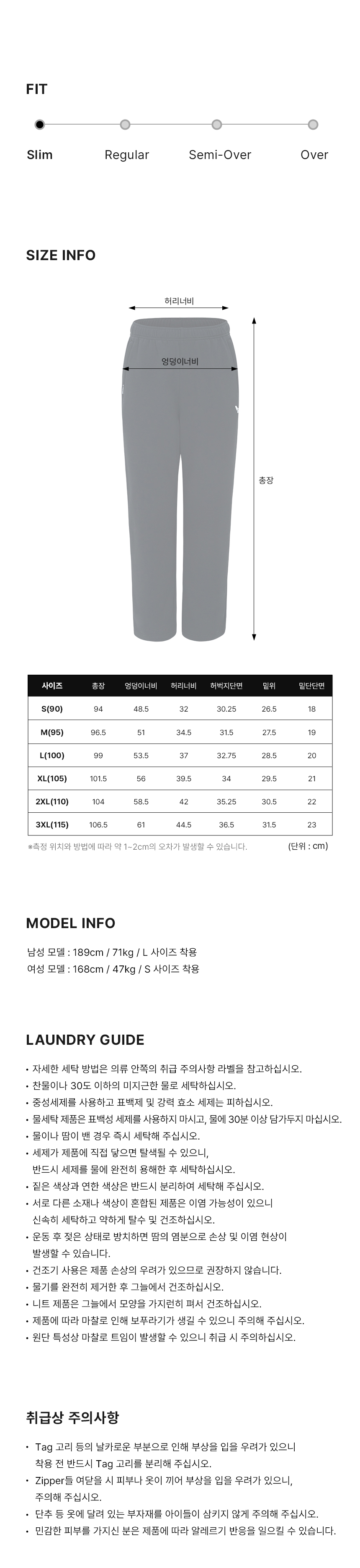 | 치수 | S(90), M(95), L(100), XL(105), 2XL(110), 3XL(115) |