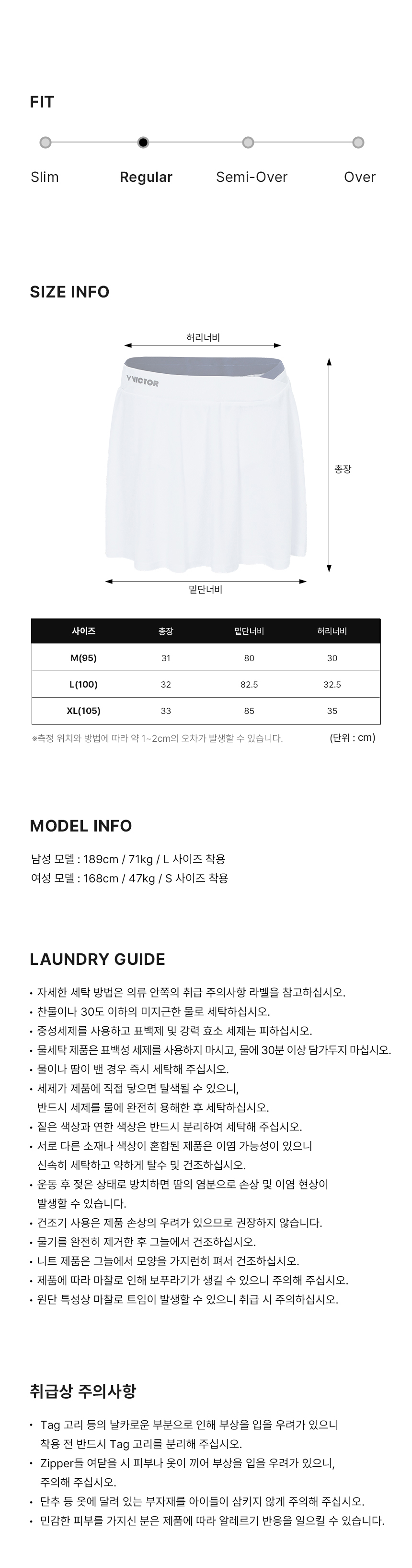 | 제품소재 | 겉감: 폴리에스터 100% 안감: 폴리에스터 82%, 폴리우레탄 18% |
