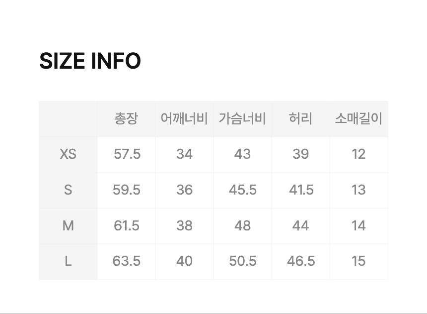 Item size chart 사이즈 기준표